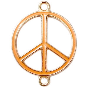 Metalen hangers - tussenzetsels " Peace" goud / oranje