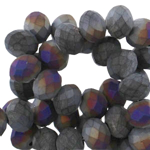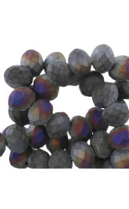 Facet kralen disc mat 6x4 mm Blue silver night half diamond coating